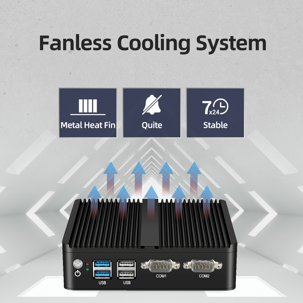 ④ Fanless construction, passive cooling, aluminum case; ⑤ Support WiFi connect to network; ⑥ Support Wake-on-LAN, virtualization, automatically power on when power failure function.